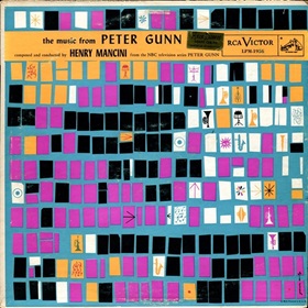 Peter Gunn "mosaic" coverThis RCA mono version of the Peter Gunn soundtrack (RCA LPM-1956) uses a stock cover (the back cover is identical to the original issue). When signing his way through some of my albums after a Vancouver Symphony concert, Mancini told me that RCA substituted this cover temporarily when Peter Gunn proved to be a runaway success and they ran out of the regular covers.